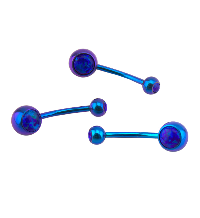 Brighten your healed piercing with this Purple Opal Teal Titanium Belly Button Ring. Made from blue PVD ASTM F-136 titanium, it has a one-of-a-kind anodized teal finish and a dazzling synthetic purple opalite stone. Sized at 14 gauge with a 3/8" (10mm) inner length and featuring internal threading, it offers both comfort and style. Sold individually.