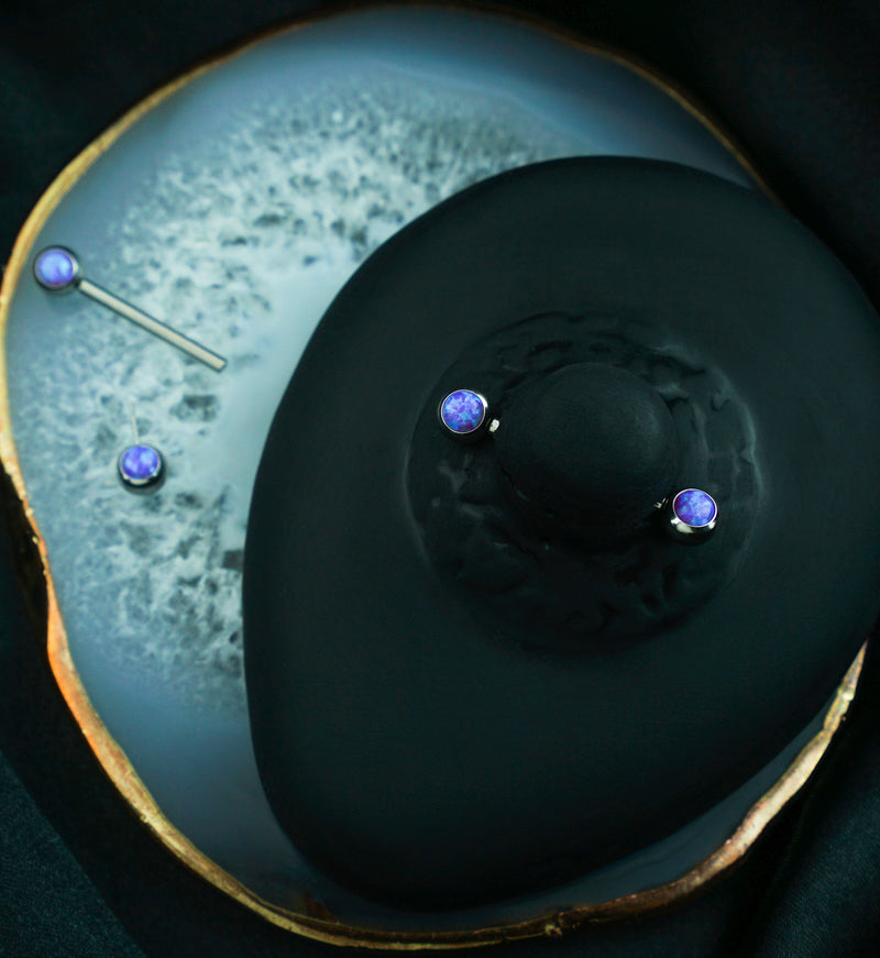 Purple Opalite Stainless Steel Threadless Nipple Barbells