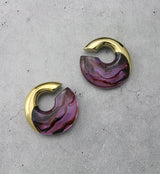 Handcrafted brass ear weights made from yellow brass and purple resin with streaks of red resin within. Height: 35mm, width: 35mm. Height and width are approximate as these are handcrafted. Size is 0G (8mm) with an approximate weight of 13 grams each. Sold in pairs (2pcs).