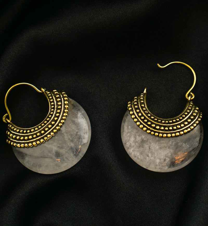 Quartz Beaded Brass Stone Earrings