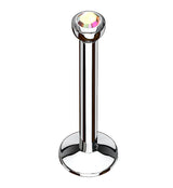 Rainbow Aurora CZ Bezel Labret Stud (Convex Disk)