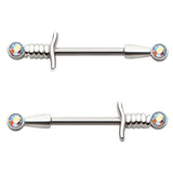 Rainbow Aurora CZ Dagger Stainless Steel Nipple Barbell