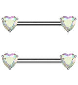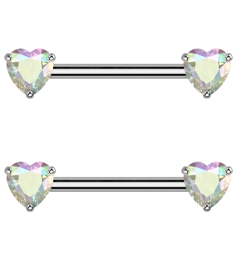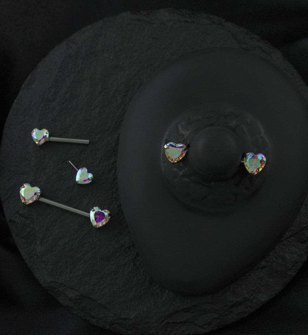 Rainbow Aurora Heart CZ Threadless Titanium Nipple Barbell