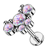 Mesmerizing labret post made from 316L stainless steel with rainbow cz gems in the shape of a butterfly and with beads throughout. Size is 16G with an inner length of either 1/4" (6mm) or 5/16" (8mm). 3mm disk size. Top is approximately 10mm. Internally threaded. Sold individually (1pc).