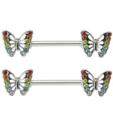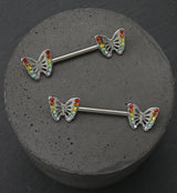 Rainbow Butterfly Stainless Steel Nipple Barbell