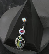 Rainbow Crystal Multi Dangle Chain Stainless Steel Belly Button Ring