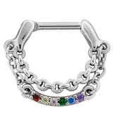 Rainbow CZ Dangle Chain Stainless Steel Hinged Segment Ring