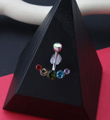 Gorgeous belly ring with cz gems in rainbow colors topped with a rainbow aura cz gem. Made with 316L stainless steel. Barbell size is 14G with a 7/16" (11mm) length. Internally threaded. For healed piercings.
