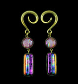 Rainbow Double Dichroic Plane Glass Brass Ear Weights