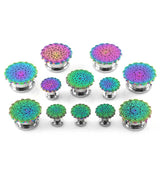 Rainbow Mandala Flower Top Stainless Steel Plugs