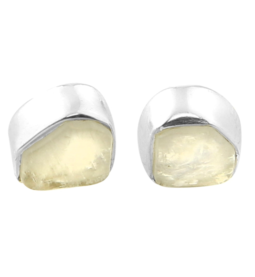 Made from sterling silver, these colorful Rainbow Moonstone Bezel Set Earrings add a touch of color to any outfit. These 20G earrings come in a pair and feature stunning rainbow moonstones in secure bezel settings with butterfly backs. Perfect for healed ear piercings. Gem sizes may vary between 5mm - 7mm.