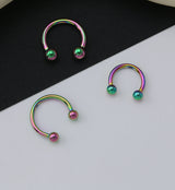 Colorful titanium circular barbells made from rainbow pvd on ASTM F-136 titanium. Externally threaded. Choose your size: 16G - (5/16" -8mm), 16G - (3/8" -10mm), 14G - (3/8" - 10mm). Sold individually (1 pc). For healed piercings.