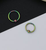 Colorful titanium captive ring made from rainbow pvd on ASTM F-136 titanium with a single bead. Size is 16G. Choose your diameter size: 5/16" (8mm), 3/8" (10mm). Sold individually (1 pc). For healed piercings.