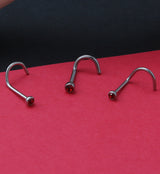 Nose screw ring with a stunning red gem stone. 5/16" (8mm) length. 316L stainless steel screw ring design. Choose your size and your gem size from the menu! Easy to insert and remove. Sold individually (1 pc).
