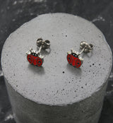Cute earring posts complete with butterfly backs and paired with a ladybug shaped tops. Size is 20G with a 1/2" length post. 8mm x 10mm top size. Constructed from red pvd on ASTM F-136 titanium. Titanium post. Sold in pairs (2pcs).
