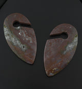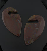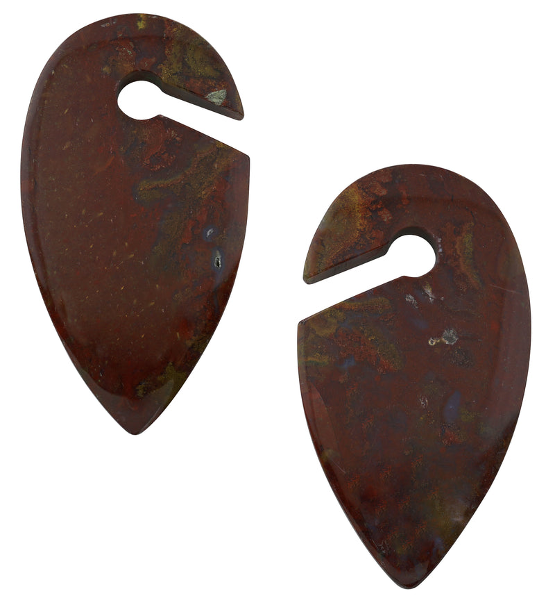 Natural red moss agate stone ear weights. Handcrafted and polished. Super fragile pieces - they will break if dropped. Red moss agate can be more red or more brown or more multi-colored. Size is about 76mm x 40mm with a 5mm thickness. They weigh about 14 grams each. 1/2" (12mm) or bigger to wear. Each piece is 100% unique so height, width, weight, gauge size are approximate. Sold in pairs (2pcs).