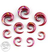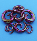 Experience the extraordinary beauty of the Red Rogue Glass Spirals. Handcrafted from glass, these spirals are available in a range of sizes from 8G (3mm) to 5/8" (16mm), and each pair has a unique iridescent pattern. Autoclave safe and hypoallergenic.