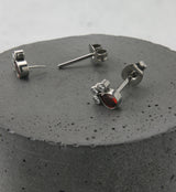 Threadless earring posts complete with butterfly backs and paired with a threadless top filled with red and clear cubic zirconia gems. Size is 20G with a 5/16" length post. 6mm top size. Constructed from ASTM F-136 titanium. Sold in pairs (2pcs).
