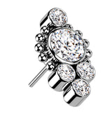 Royal looking threadless top piece made up of several, sparkling cz gems. This piece is made from ASTM F136 titanium. Approximately 7mm length. Pin length is 5mm. Sold individually.