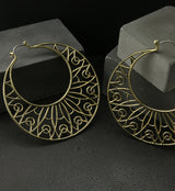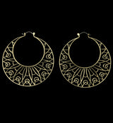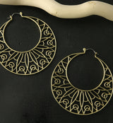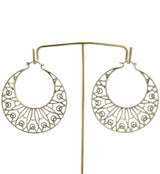 Brass hangers with a pretty, intricate design. Handmade. ASTM f-136 titanium clasp. Size is 18G with approximate dimensions of 80mm x 70mm. These are sold in pairs (2pcs).