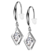 Rhombus Clear CZ Dangle Stainless Steel Earrings