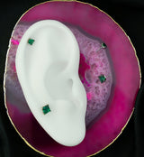 Threadless top that has a square-shaped, prong-set, emerald green cz gem design. Made from durable ASTM F-136 titanium. 25G pin. Fits most threadless posts. Choose your gem size from 3mm and 4mm. Sold individually (top piece only).