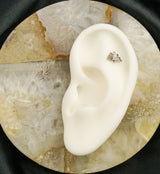 This threadless top piece has a lotus flower cutout design that has a centered, marquise-shaped, clear cz gem. Pin size is 25G so it fits most threadless tops. The top size is about 10mm x 7mm. It is made from ASTM F-136 titanium. Easy to put in and remove. Sold Individually - top only.