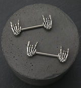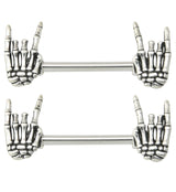 Rock On Skeleton Hand Stainless Steel Nipple Barbell
