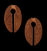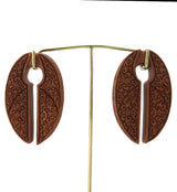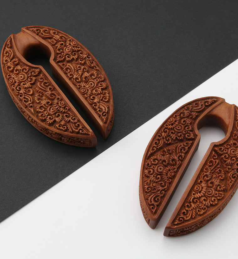 Beautiful designed wooden ear hangers made from saba wood. Each piece is handcrafted with delicately, detailed carvings throughout. Each piece will be unique in color & pattern. Must be 3/4" (19mm) or bigger to wear. Weight is approximately 38 grams each. Sold in pairs (2pcs). For healed piercings/lobes.