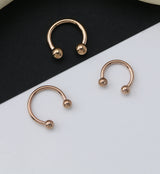 Pretty titanium circular barbells made from rose gold pvd on ASTM F-136 titanium. Externally threaded. Choose your size: 16G - (5/16" -8mm), 16G - (3/8" -10mm), 14G - (3/8" - 10mm). Sold individually (1 pc). For healed piercings.