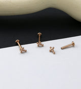 Pink internally threaded labret post topped with a beaded cross design. Size is 16G with a length of 5/16" (8mm) and a flat back. Made from rose gold pvd on ASTM f-136 titanium. Pretty option to add to your body jewelry collection! Sold individually (1 pc). For healed piercings.
