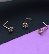 Rose Gold PVD Beaded Flower Clear CZ L Bend Nose Stud