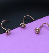 Rose Gold PVD Beaded Flower CZ Nose Screw Ring