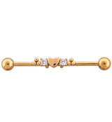 Rose Gold PVD Beaded Heart CZ Industrial Barbell