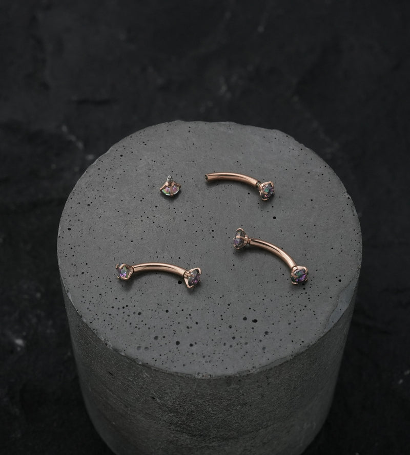 Rose Gold PVD Black Aurora CZ Prong Set Stainless Steel Curved Barbell