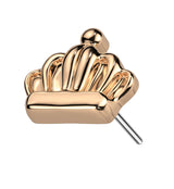 This top is made of rose gold pvd on ASTM F136 titanium and is designed to fit most threadless posts with its 25G pin. The top has a crown design and shape which would make a fun addition to your jewelry collection! Top size measures at about 8mm x 7mm. Sold individually (top piece only).