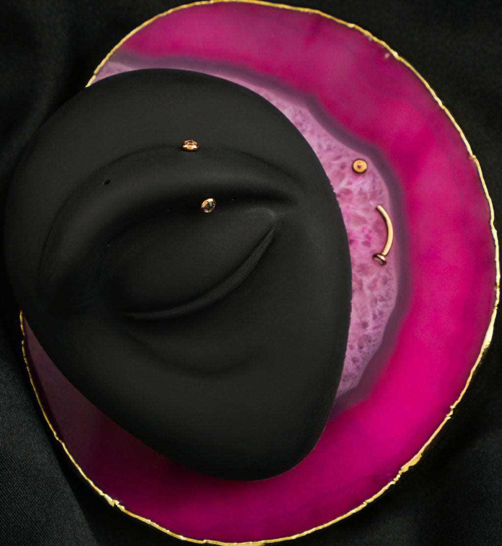 Internally threaded curved barbell made from rose gold pvd on ASTM F-136 titanium and 2 bezel-set, clear cz gems. Size 16G with an inner length of 5/16" (8mm). Each end has a removable cz with a size of 3mm. Sold individually. For healed piercings.
