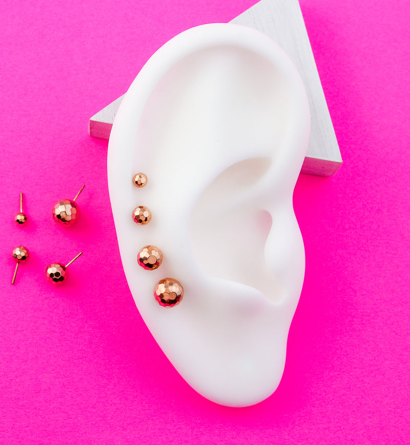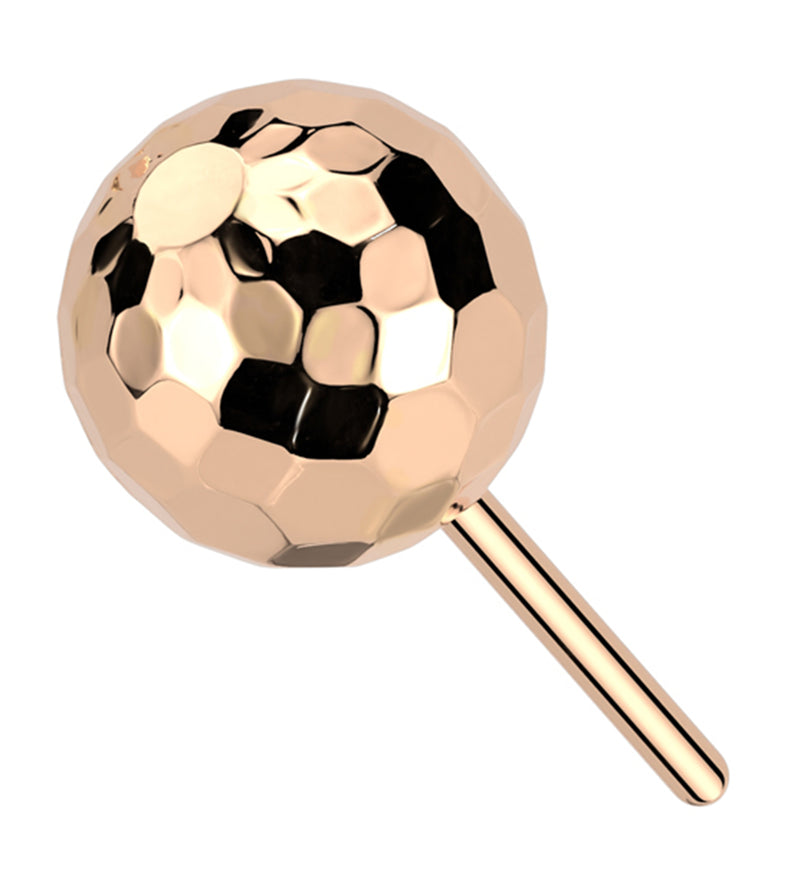 Designed from rose gold pvd on ASTM F-136 titanium, this Faceted Ball Titanium Threadless Top offers a pretty and stylish addition to any piercing. The ball piece has a multi-faceted design for added shine. Available in 4 different ball sizes: 3mm, 4mm, 5mm, and 6mm. This individual top uses a threadless design and fits most threadless posts for a secure and comfortable fit. Elevate your piercing game with this top!