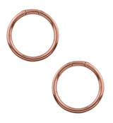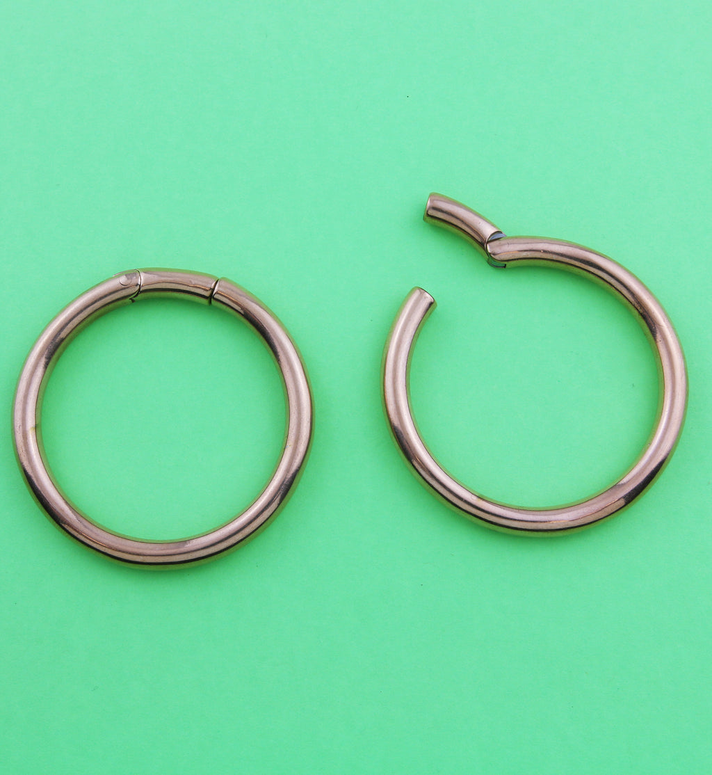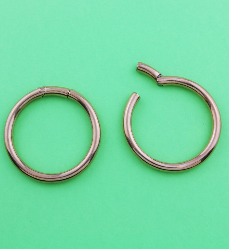 Adorn your ears with these beautiful Rose Gold PVD Hoop Ear Weights! Crafted from 316L stainless steel and coated with Rose Gold PVD for a lasting shine, these ear weights come in pairs (2pc), each weighing 22.5 grams and with a diameter of 2" (50mm). Requiring a 2G (6.5mm) or bigger piercing to be worn, these ear weights feature a magnetic hinge for easy insertion and removal.