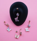 Rose Gold PVD MOP Butterfly Dangle Stainless Steel Belly Button Ring