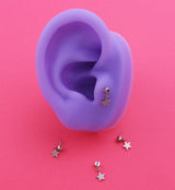 This titanium top is sold individually and made from the rose gold pvd on ASTM F-136 titanium with a bezel set 2mm rainbow aurora cz gem with a dangling star attached. Star measures about 4mm in size. Top is designed to fit most threadless posts with a 25G pin. Fun style to add to your piercing!