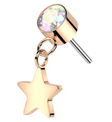 Rose Gold PVD Rainbow Aurora CZ Dangle Star Titanium Threadless Top