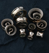 Make your friends hiss with envy with these snake stainless steel tunnel plugs! Made from durable rose gold pvd 316L stainless steel with a wearable area of 8mm. Choose your size from 0G (8mm) - 1" (25mm). Sold in pairs (2 pieces). For healed piercings.