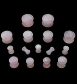 Sold in pairs (2 pieces). Rose quartz stone. Double flares. Faceted cut front surface. Wearable: 11mm +/-. Each piece will be unique in color