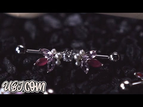 Stay fresh with our rosey floral industrial barbell! The 14g straight barbell is constructed from 316L stainless steel and includes 5mm balls. Classic external threading and a variety of cubic zirconia gems will keep your piercing shining for any occasion! Three barbell sizes (1 ¼”, 1 3/8” and 1 ½”) are included so you can easily find your perfect fit. Intended for healed piercings only.