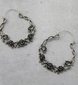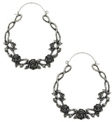 Plug hoops with a vine design filled with roses. They are 20G and made from 316L stainless steel with a 316L stainless steel post. These styles are made to fit in any eyelet/tunnel style of plugs but can also be worn in normal ear piercings. Dimension: 70mm (L) x 60mm (W). Sold in pairs (2 pcs).