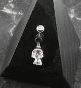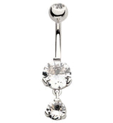 Round Clear CZ Dangle Stainless Steel Belly Button Ring