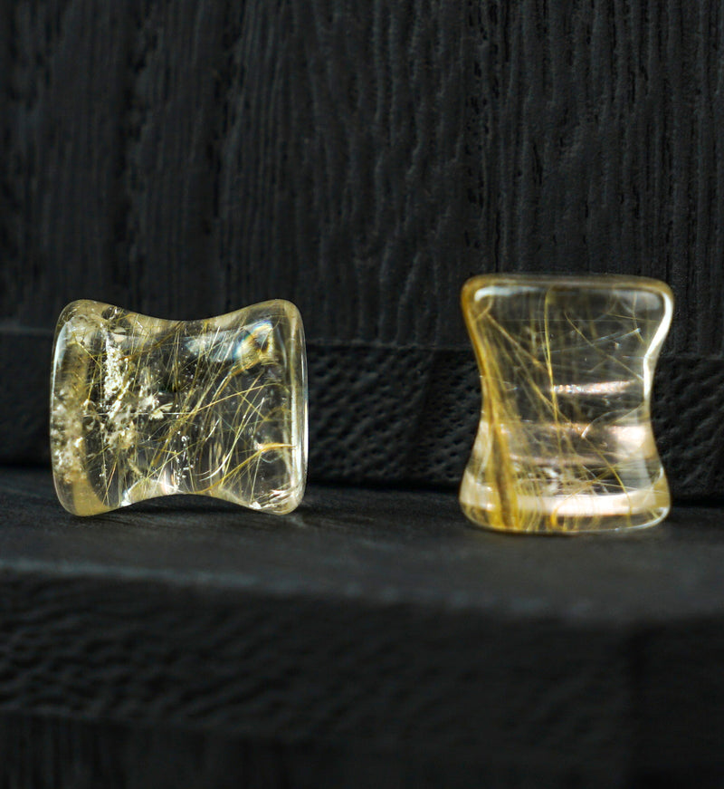 Rutilated Quartz Stone Plugs 0G (8mm) Version 1