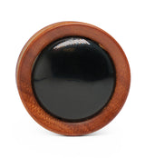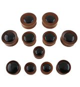 Saba Wood Plugs With Black Obsidian Stone Inlay