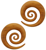 Handmade from saba wood, these super ear spirals offer a smooth surface for comfortable wear. Sold in pairs and available in sizes from 8G (3.2mm) to 1" (25mm), these wooden spirals are perfect for those seeking a fun and natural look. Keep out of water and do not use for ear stretching.